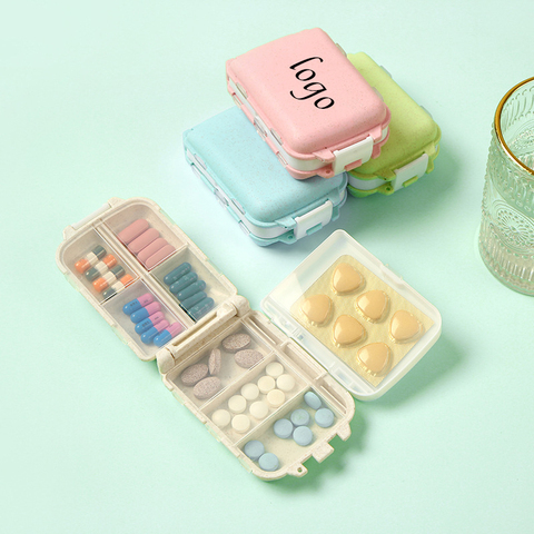 Dispensador de pílulas de palha, logotipo personalizado, eco-amigável, semanal, recipiente de remédio, caixa de comprimidos de 7 dias