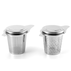 Logotipo personalizado Double Handle Malha Fina Loose Leaf Tea Strainer Filter Aço Inoxidável 304 Balde Chá Infusor Com Tampa