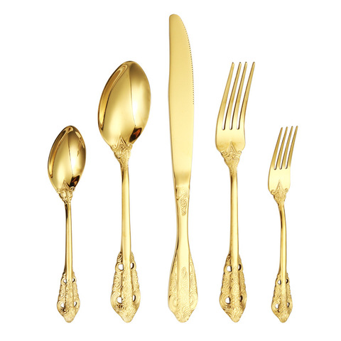 Conjunto De Talheres De Luxo Real 24 Barroco, Conjunto De Talheres De Aço Inoxidável, Talheres De Ouro De Casamento Vintage