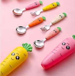 Bonito criativo rabanete portátil crianças colher e garfo conjunto aço inoxidável crianças talheres com caso